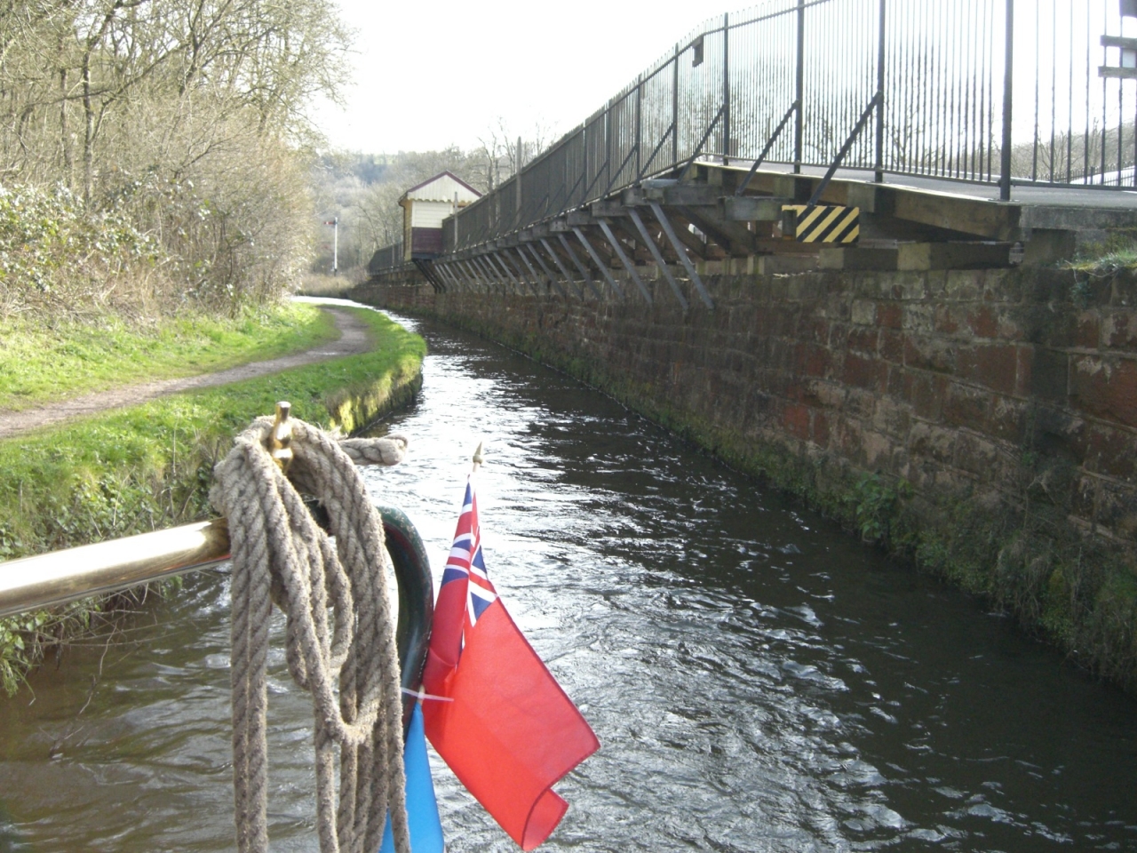 Image Description: | Looking back to Consall Mill railway station showing the platform overhanging the canal. This is part of the Churnet valley historic railway. |