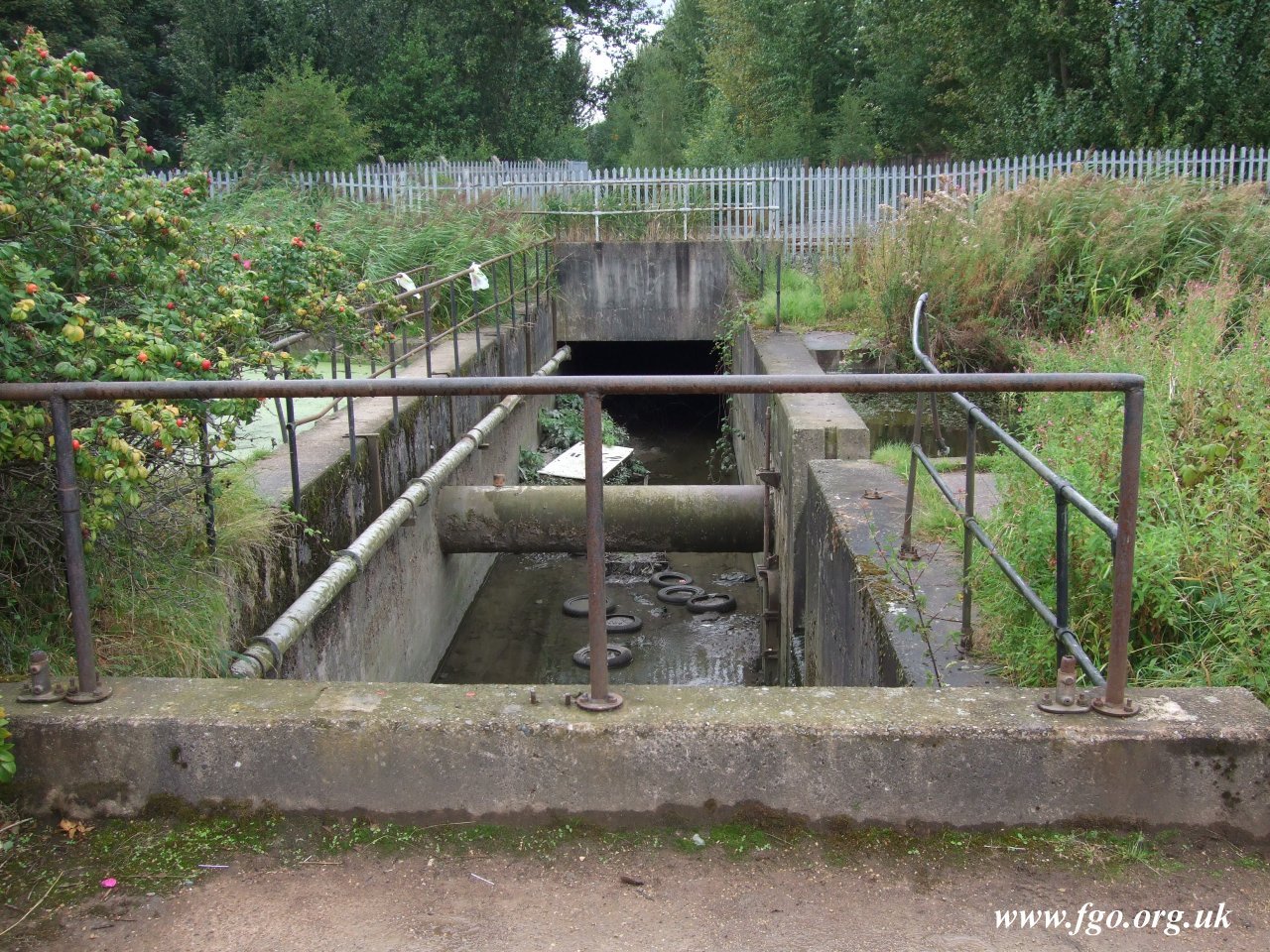 Image Description: | Originally Johnsons Swing Bridge the canal is severed here with an open sewer. The pipe through the middle is to maintain the water levels in the canal. |